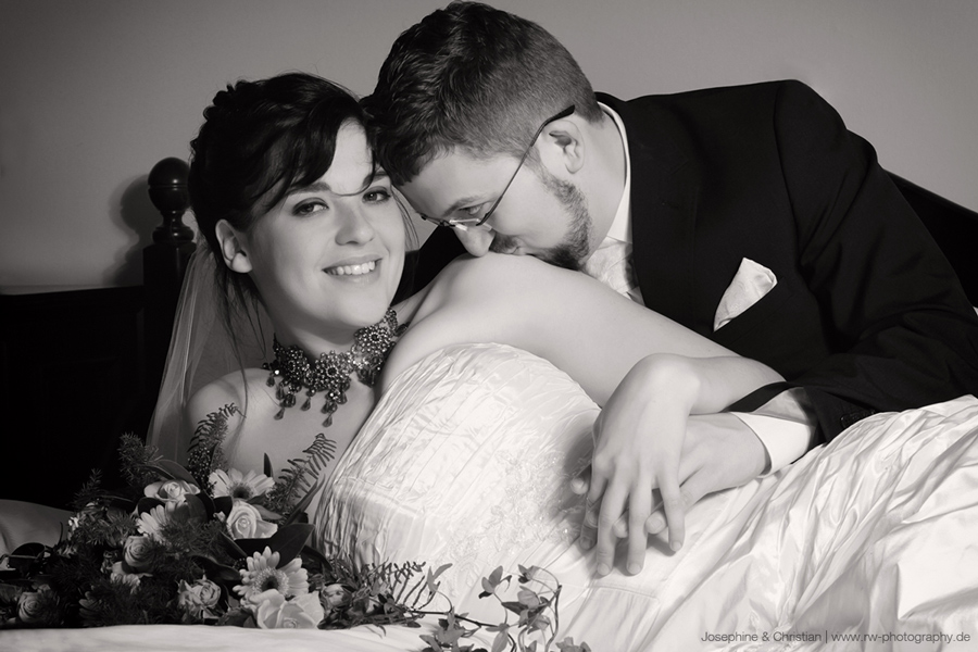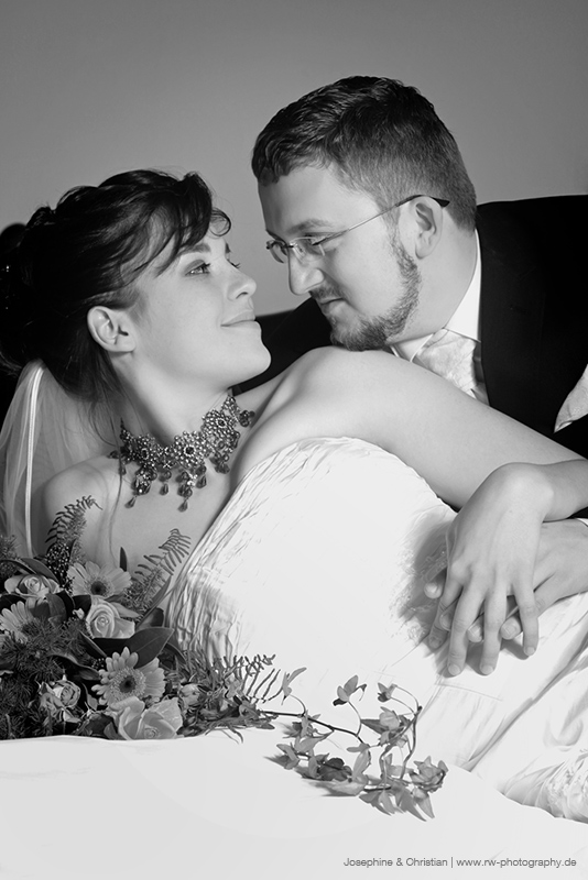 Josephine & Christian haben sich spontan entschieden mich zu buchen. Durch die winterliche Jahreszeit war es abzusehen, dass wir im Freien leider keiner Bilder machen können. Da packte ich natürlich schnell mein Studioequipment ein und baute eben in der Fabrikantenvilla im extra reservierten Zimmer für das frisch gepackene Hochzeitspärchen das Setting auf.