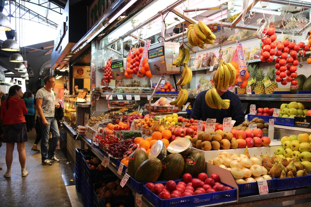 Der Markt in Barcelona, direkt auf der La Rambla gelegen und eine der wohl bekanntesten Straßen in Barcelona ist einfach mal mega toll. Man nehme 10 – 15 Euro in die Hand und futtere sich so voll, dass man nur noch rollend wieder davon geht 😉 Neben Fisch, Fleisch, Schinken, Brötchen oder Teigtaschen findet man frisch gepresste Säfte und Obst & Gemüse soweit das Auge reicht.