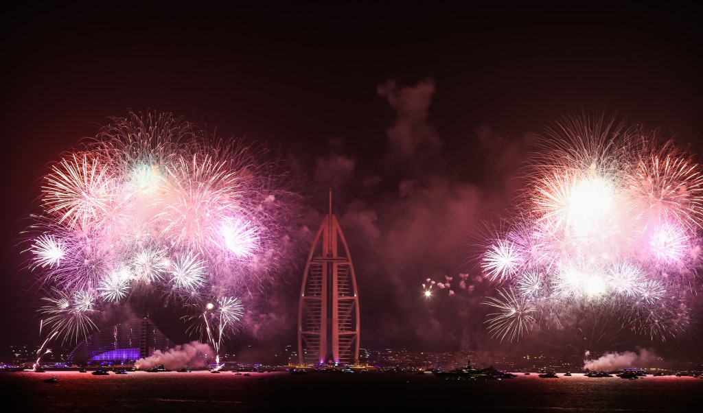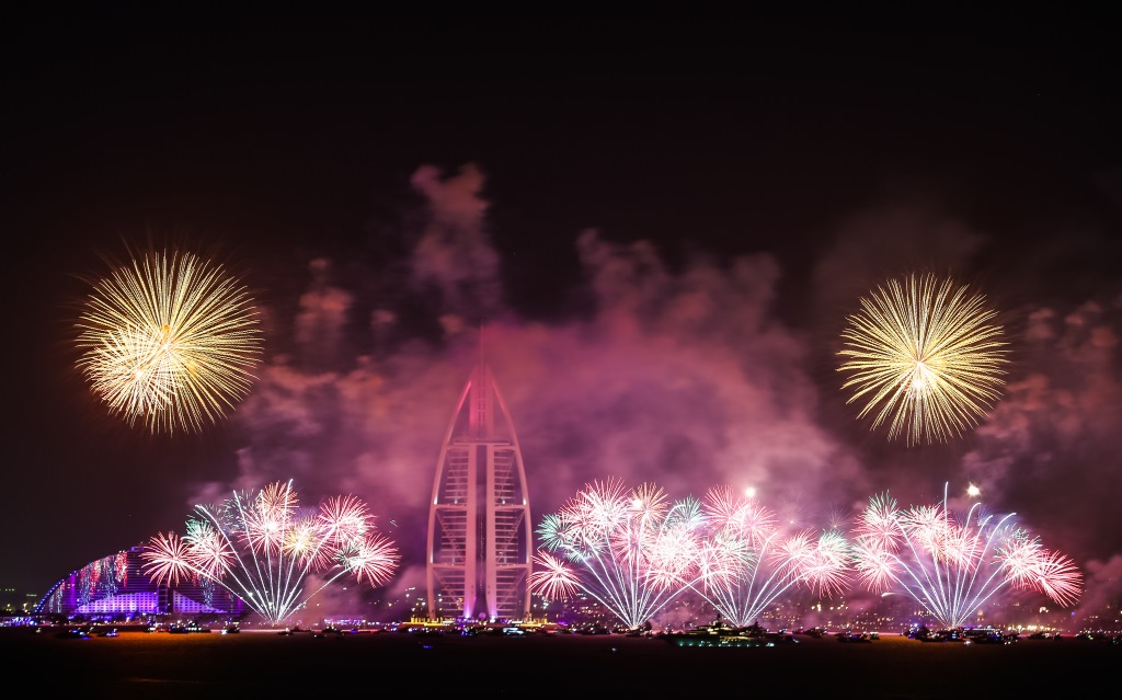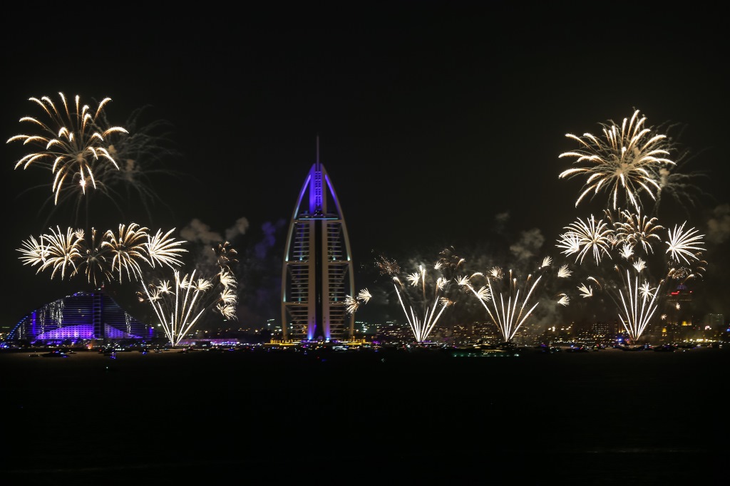 Ein paar Eindrücke des tollen Feuerwerks von der Skyline von Dubai. Leider haben wir den Weltrekord am Burj Khalifa aufgrund der Entfernung nicht sehen können: