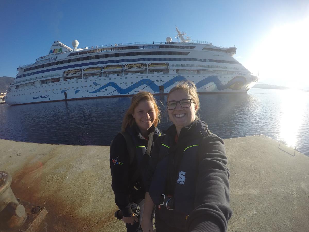 Arbeit und Genießen in einem – das kann man sicher nicht so oft. 6:30 Uhr Standby für das Lotsenboot. Einer kommt aufs Schiff, drei gehen runter. Mit der Kamera bewaffnet ging es mit dem Lotsenboot einmal rings um das Schiff, weiter zum Containerschiff um einen weiteren Lotsen wieder abzuholen um dann auf die Pier zu kommen 🙂
